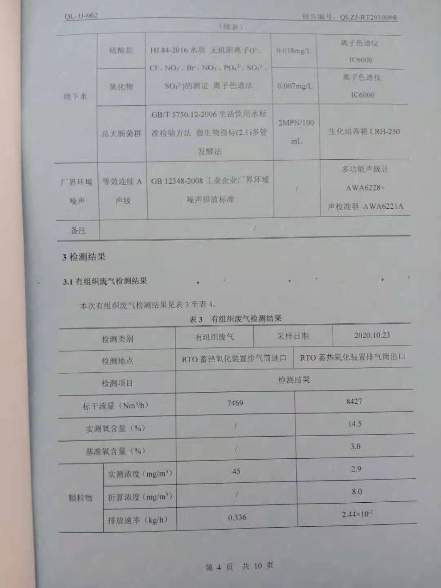 日照廣大建筑材料有限公司第四季度檢測(cè)報(bào)告
