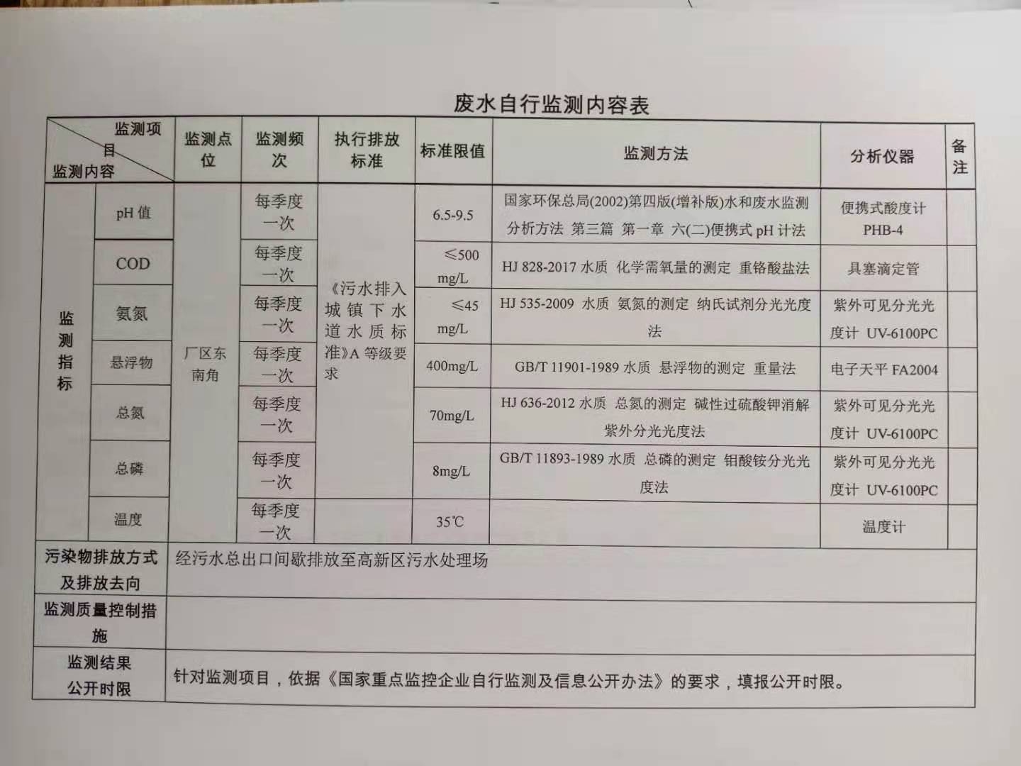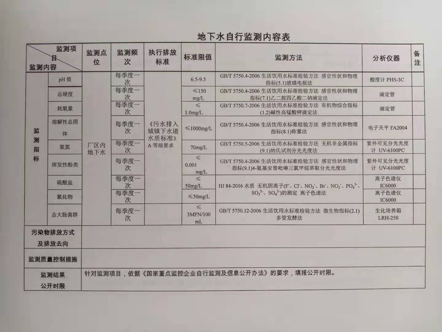 污染源自動監(jiān)控信息表
